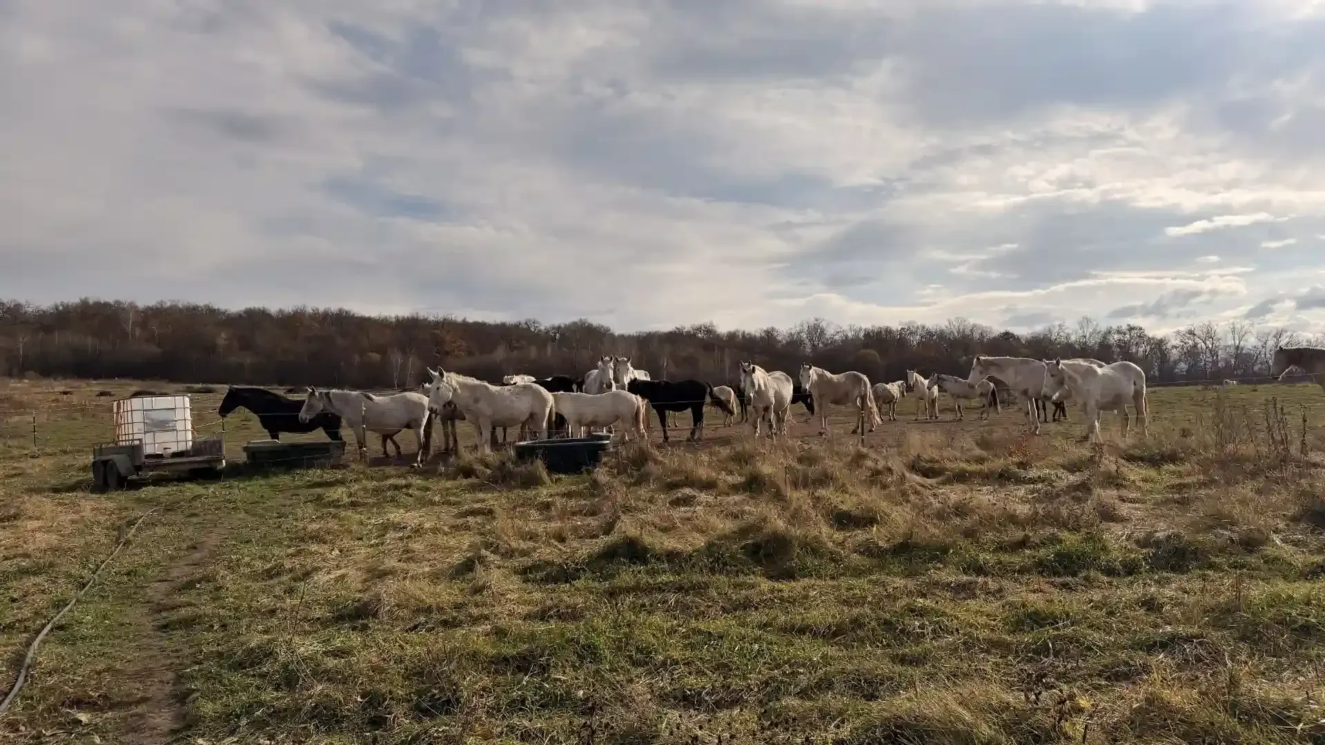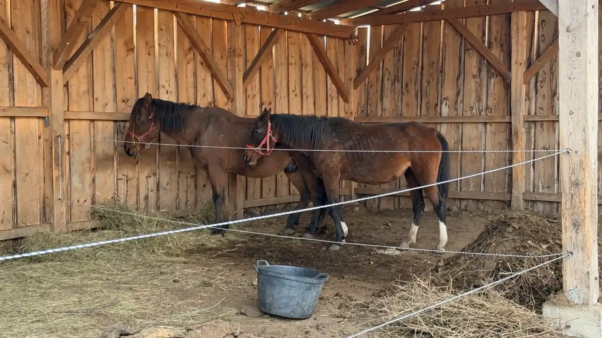Trotz allem kamen wir schließlich oben an und konnten den Pferden rund 300 Liter Wasser bringen. Kaum war es verteilt, stürmten sie heran – durstig, ungeduldig, voller Energie. Teo und Simon mussten einschreiten, um sicherzustellen, dass jedes Pferd seinen Anteil bekam. Das Wasser war in Minuten verschwunden. Danach machten wir noch die Heuarbeit bei den Ladys, die uns freudig begleiteten. Die neue Lieferung vom Bauern war gerade angekommen, und der Duft des frischen Heus lag in der Luft. Einige Pferde waren so übermütig, dass sie mit den Hinterhufen ausschlugen – dabei wäre ich fast getroffen worden, als eines plötzlich ausschlug. Zum Glück konnte ich rechtzeitig ausweichen – das hätte übel enden können.