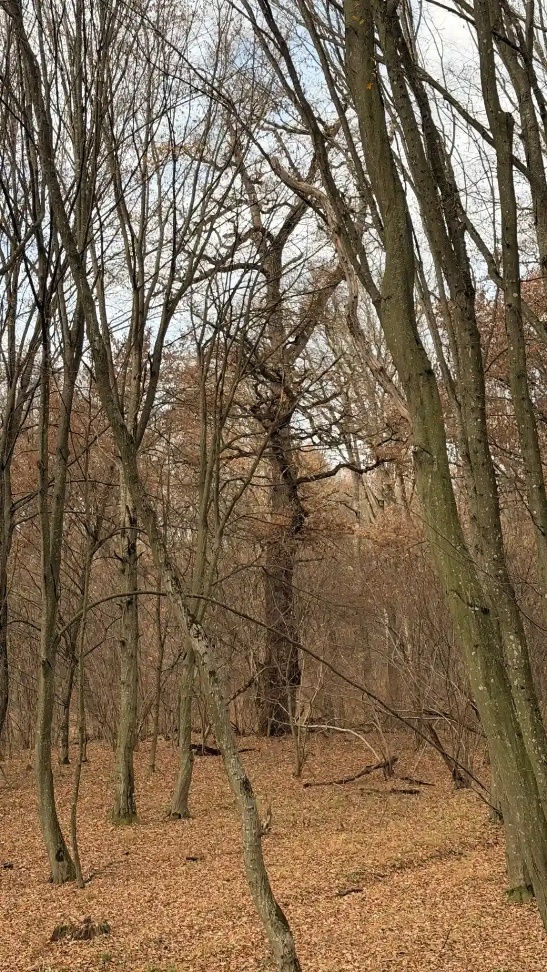 Später machte ich, wie Teo es mir schon öfter geraten hatte, einen Spaziergang durch den Wald. Es war beeindruckend – uralte, hohe Bäume, das Rascheln des letzten Laubs unter den Füßen, der Wind, der Geschichten erzählt. ๐ Leider sind die Blätter inzwischen fast alle gefallen, der goldene Glanz der letzten Wochen ist verblasst. Trotzdem war es wunderschön, dieses friedliche Schweigen zwischen den Stämmen. Ich liebe dieses Rascheln, wenn man durch das Laub schlurft – es klingt nach Kindheit und Geborgenheit.
