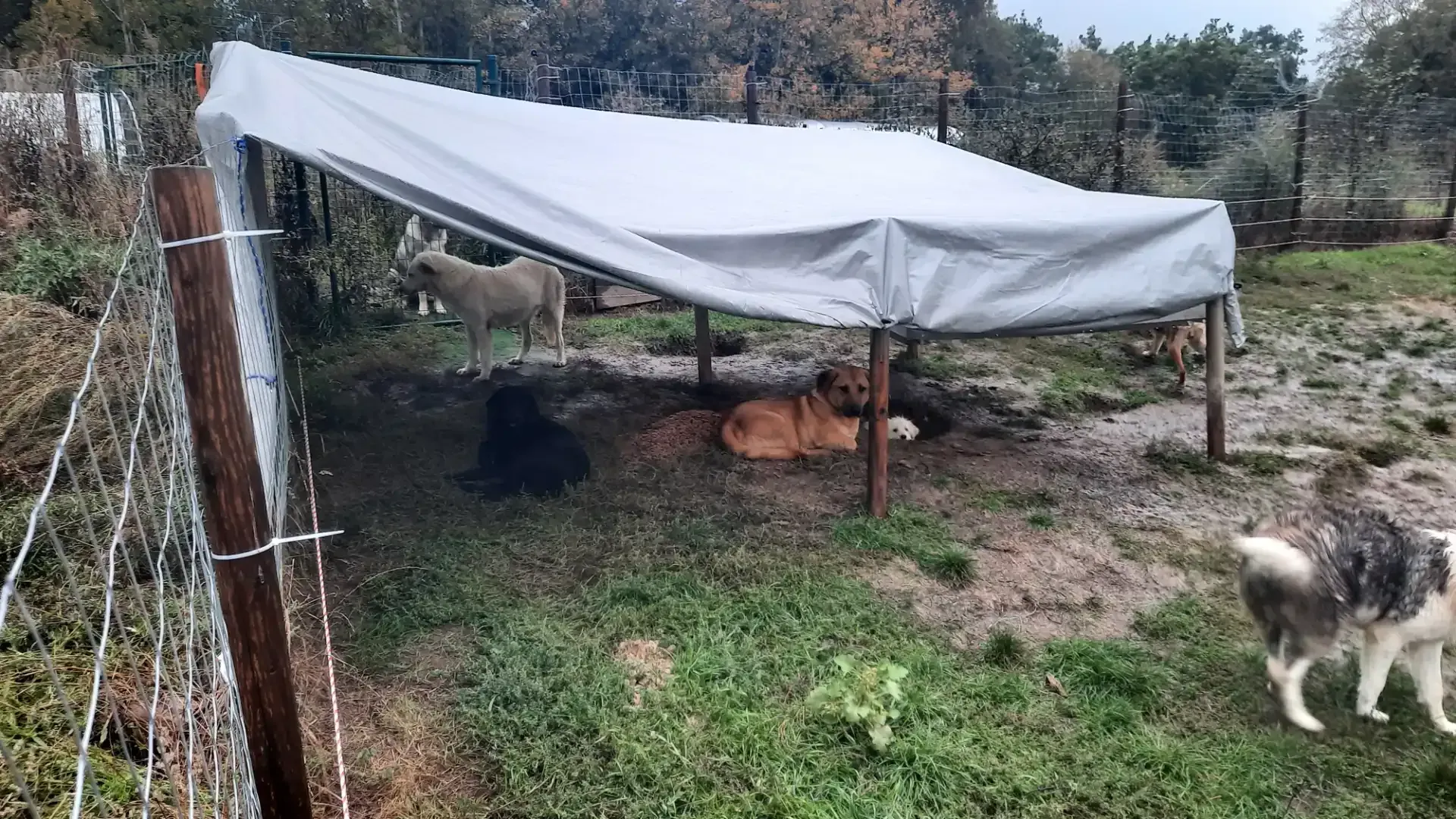 Auf den weiteren Fotos seht ihr, wie unterschiedlich die Hunde untergebracht sind, wenn es regnet – es gibt diverse Überdachungen, Unterstände, kleine Hütten.