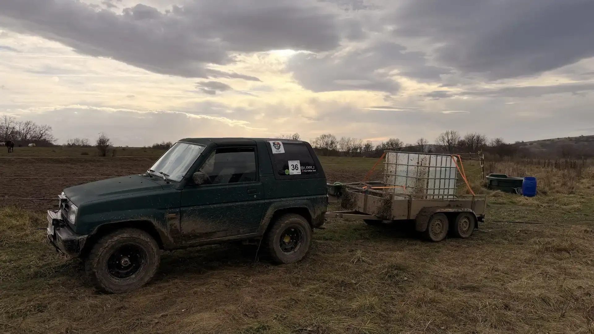 Oben angekommen füllte ich die Tränke der Ladys. Sie hatten heute nicht viel getrunken, also blieben rund 300 Liter übrig. Ich hängte den Hänger wieder an und stellte den Daihatsu im Gartenbereich ab.
