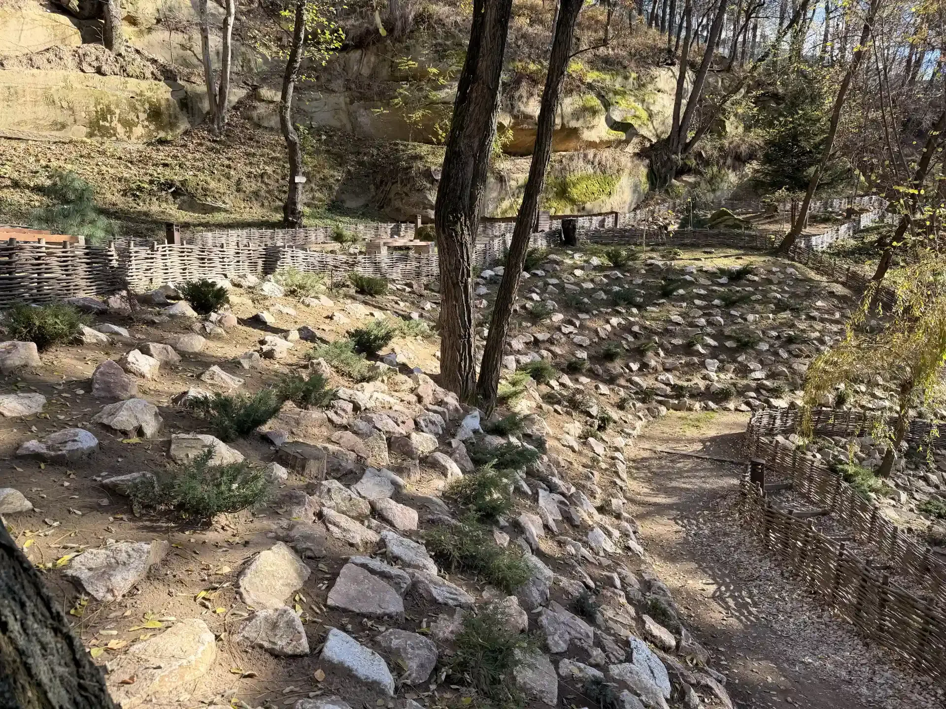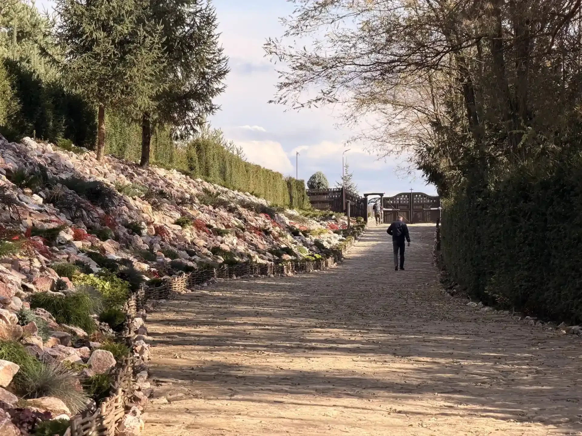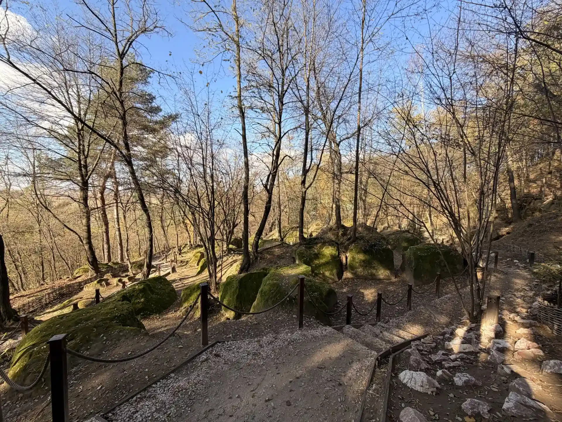 Auf der Fahrt sprachen Nikita und ich noch darüber, dass wir hoffen, es sei heute nicht zu voll. Doch als wir am Parkplatz ankamen, wurden wir schon begrüßt – wie auf dem Sanctuary. Fünf Hunde liefen uns entgegen. 🐕 Dann der kleine Schreck: Zwei Busse voller Schüler waren gerade angekommen. Wir beschlossen, einfach hinterherzugehen und zu sehen, wohin die Gruppe strömt. Während sie in die Höhlenkirche gingen, erkundeten wir das Außengelände und das Kloster darüber. Ich hoffe, die Fotos können ein wenig zeigen, wie wunderschön die Anlage angelegt ist – eine Mischung aus Ruhe, Geschichte und Magie.