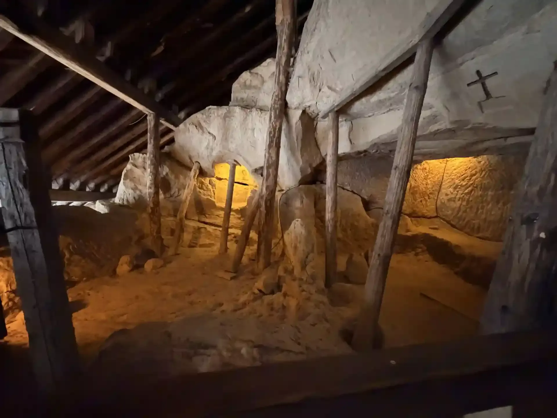 Diese Anlage wird auch „Tempel des Wunsches“ genannt und gilt als einer der mystischsten Orte Rumäniens. Sie besteht aus mehreren in Stein gemeißelten Räumen, verbunden durch schmale Gänge. Historiker vermuten, dass die Anlage bereits im 13. Jahrhundert entstand – oder noch älter ist, möglicherweise sogar aus vorchristlicher Zeit. In den Felswänden finden sich eingravierte Symbole wie das Kreuz, die Sonne und das Fischsymbol, die verschiedene religiöse Einflüsse andeuten. Im Hauptgewölbe befindet sich ein rundes Loch in der Decke, durch das Licht – oder nachts der Blick auf den Himmel – fällt. Viele glauben, dass dieser Ort eine starke Energie besitzt und Wünsche erfüllt, wenn sie mit reinem Herzen ausgesprochen werden. 🌌
