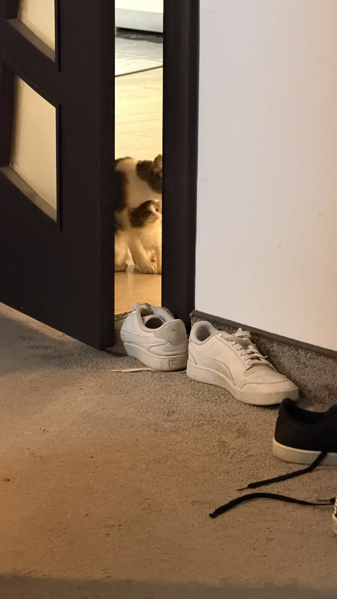 Nolas wollte dann aus meinem Zimmer in die Küche laufen, kam dabei aber Malou in die Quere – und sie hat ihn kräftig erwischt. Der arme Kerl war so verängstigt, dass er den ganzen Tag in meinem Zimmer verbrachte, versteckt unter dem Bett. Er ist nicht einmal aufs Katzenklo gegangen, so eingeschüchtert war er. Immer wieder schaute er zur Tür, mit diesem Blick, als würde er sagen: „Bitte sag mir, dass da draußen nichts Gefährliches wartet.“ 💔