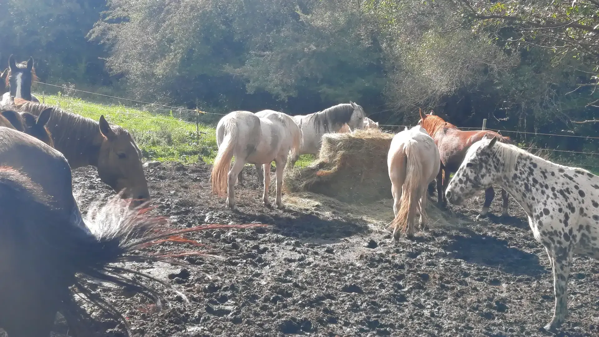 Am Nachmittag ging’s dann wieder auf die Pferdewiese zu den Damen – Zeit für ihre drei Heuballen. Die Versorgung ist körperlich echt anstrengend, aber es macht einfach so viel Sinn, wenn man sieht, wie sie mit Genuss fressen und sich wohlfühlen. ๐Ÿด๐Ÿ‚