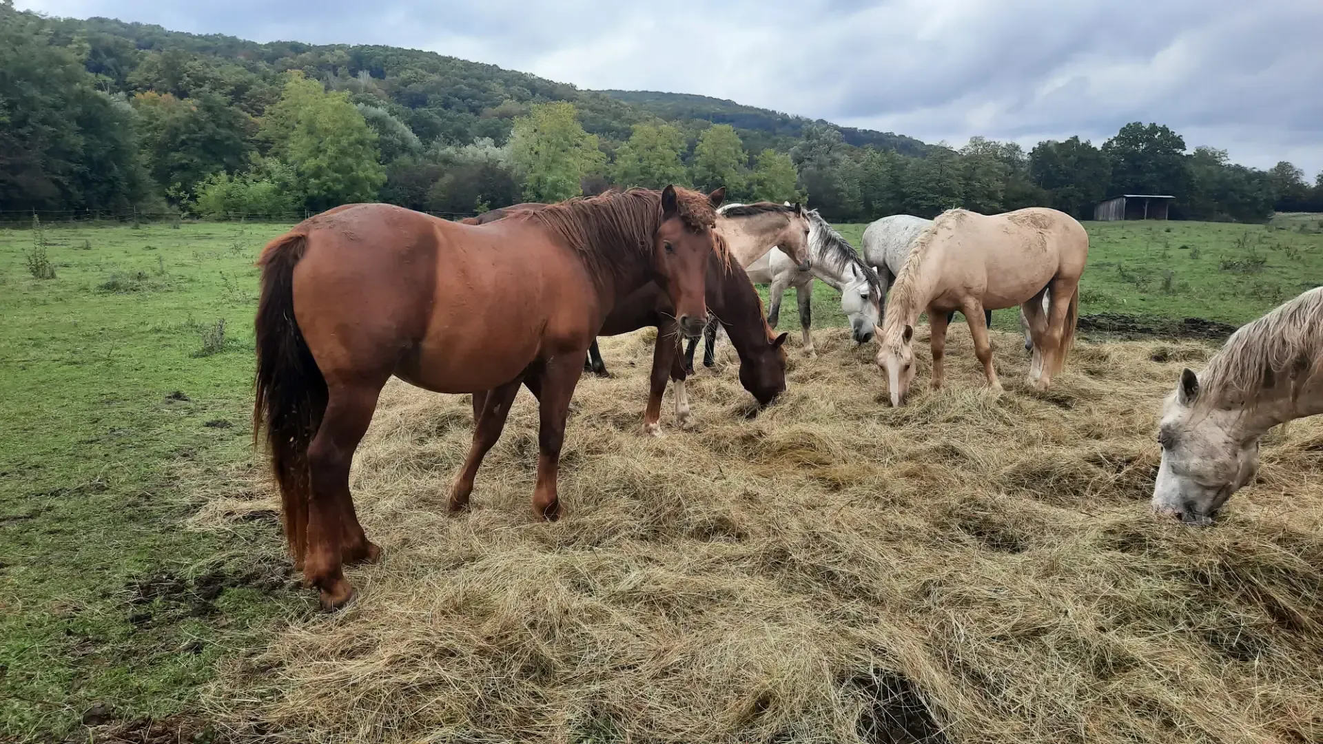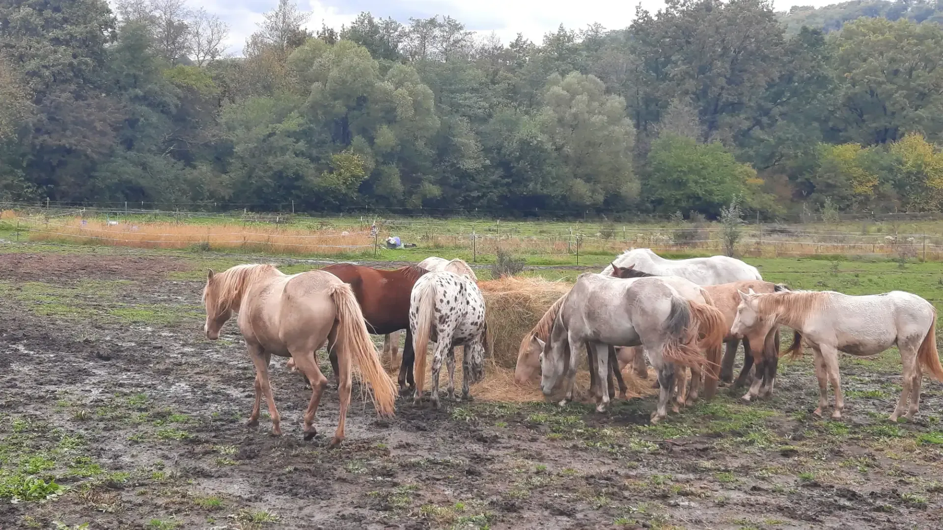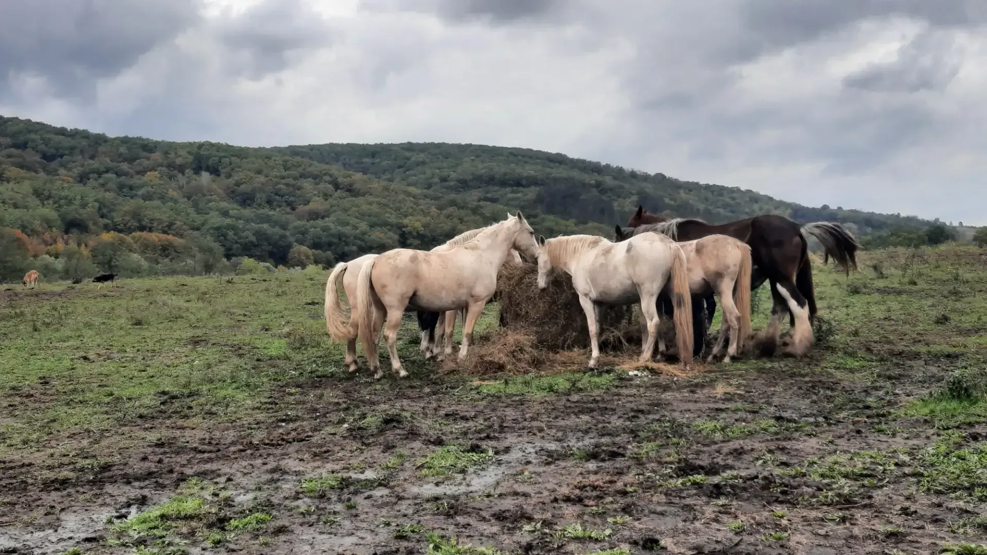 ๐Ÿด Danach haben wir die große Pferdegruppe – die Mütter mit ihren Fohlen – mit drei riesigen Heuballen versorgt. Das bedeutet: Ballen von Hand über die matschige Wiese rollen, Netze entfernen und zusehen, wie die Herde sich genüsslich auf das Futter stürzt. Man steht da plötzlich mittendrin – ein wirklich intensives Erlebnis.