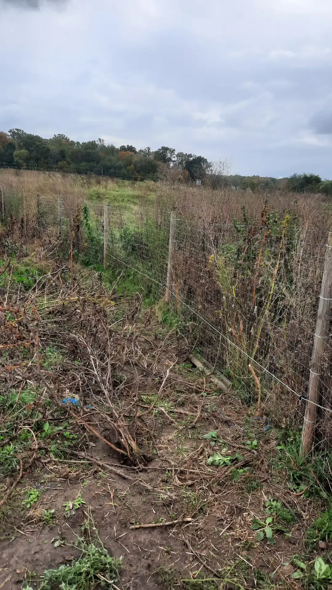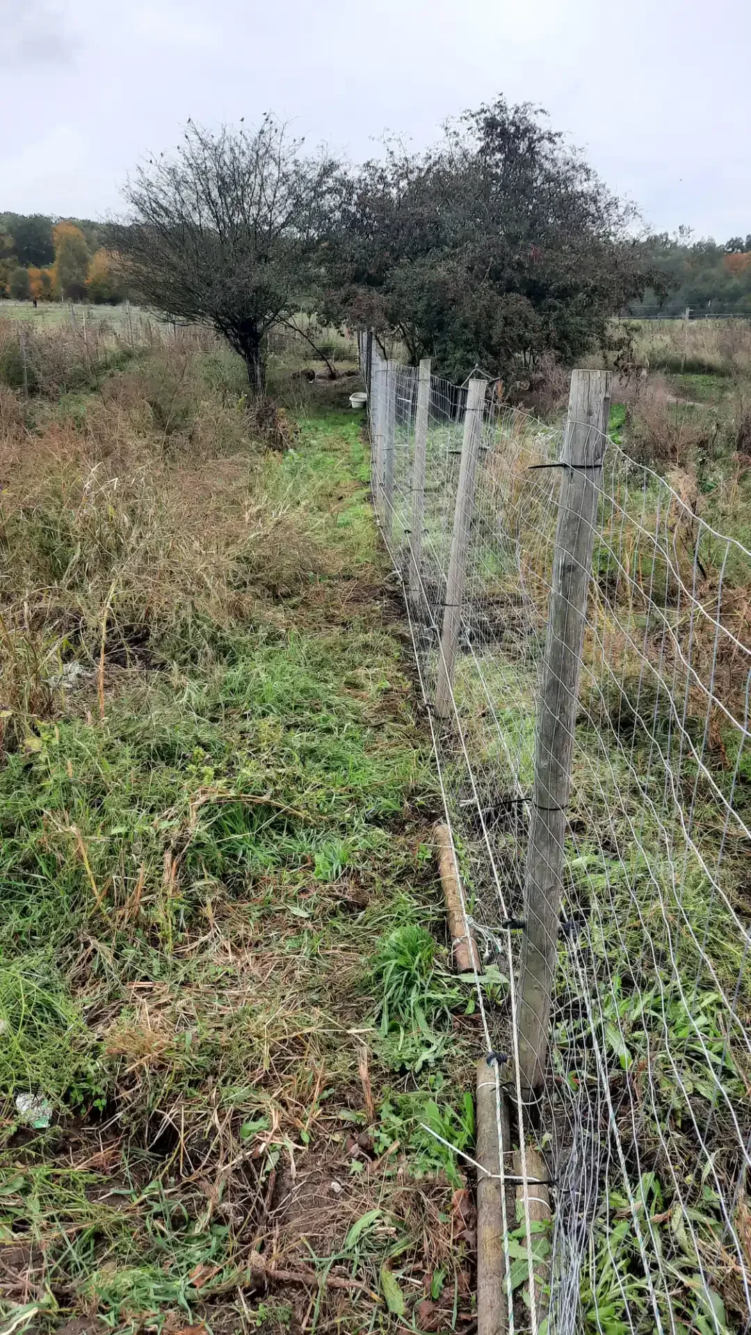 Unsere Hauptaufgabe heute: den Zaun beim Gehege von Paplo und beim angrenzenden Hundegehege von Unkraut und Sträuchern befreien. Die Stromleitungen waren teilweise zugewachsen und hingen schon ziemlich durch. Mit vereinten Kräften schnitten wir alles frei, befestigten die Drähte neu und konnten am Ende die Gehege wieder mit Strom absichern.